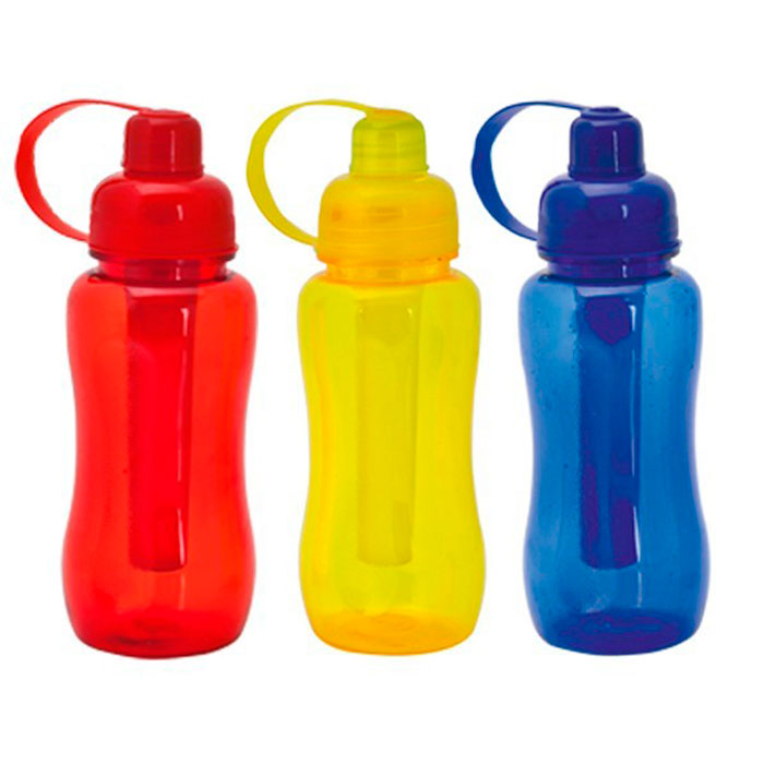 Tomatodo de 600ml de capacidad, acabado transparente en material PS. Con dosificador de seguridad y tapa rosca con accesorio enfriador.