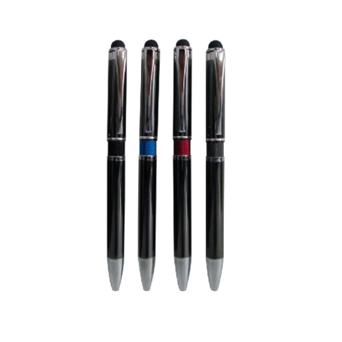 Original bolígrafo de mecanismo pulsador en elegante diseño bicolor. Con cuerpo troquelado en aluminio de suave acabado en variados colores. Original clip, anillas y punta en plateado. touch