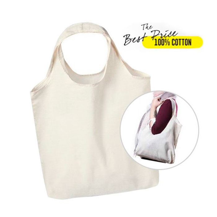 Bolsa en material 100% algodón con acabado en color natural. Con originales asas para hombro y de acabado cosido. Resistencia hasta 7kg de peso.