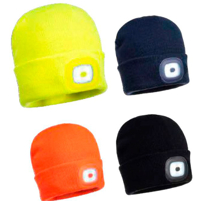 Gorro deportivo de doble capa con indicadores luminosos integrados que ofrecen 4 modos diferentes de iluminación LED. En suave y confortable material acrílico. 4 Ledes. 4 Posiciones de Luz, Fija e Intermitente. Batería 300 mAh