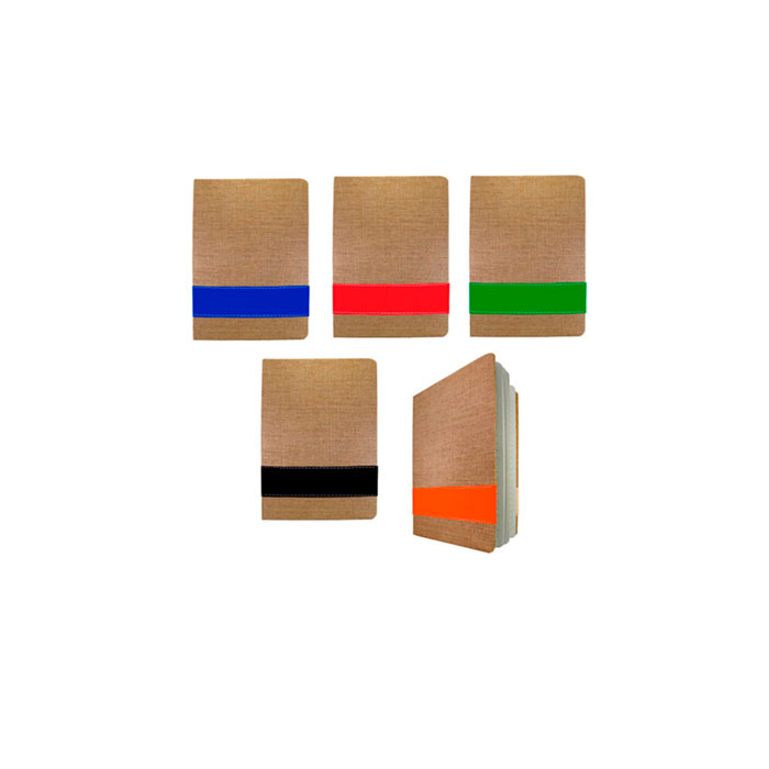 Libreta cubierta de Lino y Poliuretano, 80 hojas de papel crema con línea, marcador de cinta.