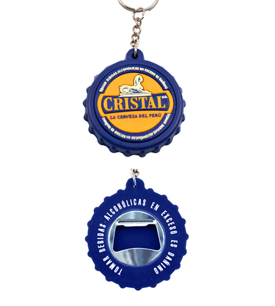 Llavero destapador microinyectado en plastisol, inyeccion 3 colores mas un fondo, de 5.5cm de diametro, destapador interno.