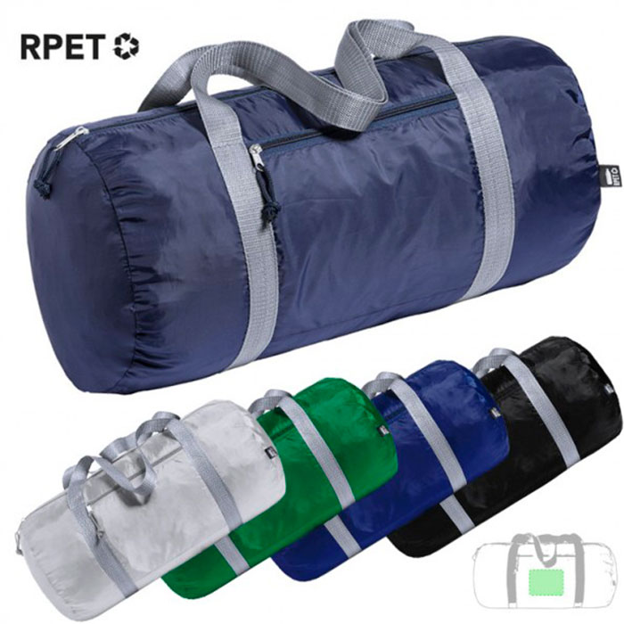 Bolso multiusos en suave poliéster 290T RPET, elaborado a partir de plástico reciclado, para así fomentar la reutilización de residuos plásticos y ayudar a la sostenibilidad del planeta. En desenfadado diseño bicolor retro, con bolsillo principal y frontal con cierres de cremallera y tiradores con cuerdas. Resistentes asas de nylon en contraste alrededor del cuerpo en color gris. Disponible en variada gama de colores, con distintivo RPET en etiqueta.