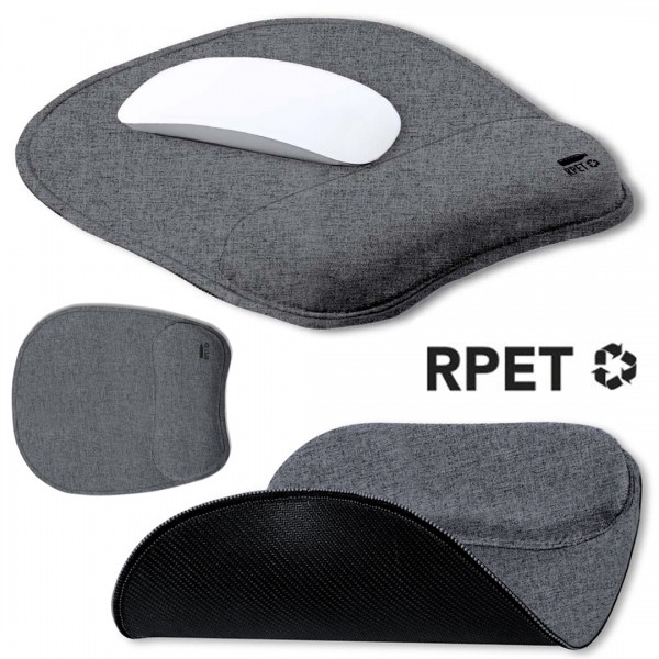 Mouse Pad en poliéster RPET, elaborado a partir de plástico reciclado, para ayudar a la sostenibilidad del planeta, fomentar la reutilización de residuos plásticos. Con base anti deslizante en silicona y reposa muñecas acolchado para prevenir el estrés y el dolor en las articulaciones.