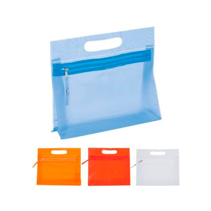 Neceser multiusos en resistente PVC translúcido de variada gama en vivos colores. Con resistente asa troquelada y cierre de cremallera a juego, con cinta en tirador para fácil apertura.