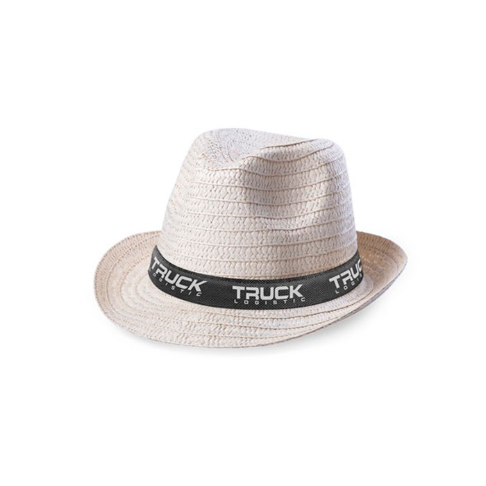Sombrero en fibra sintética de alta calidad. Con cinta interior y orificios de ventilación.